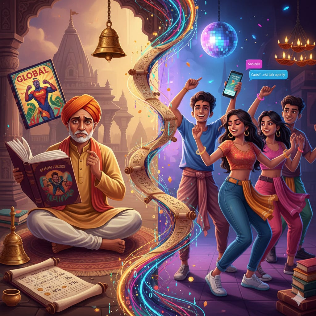 Instead, Sameer says, Gen Z is proudly reclaiming and modernising Indian culture—such as through “Bhajan Raves,” ethnic clothing, and spiritual tourism (e.g., preferring the religious Mathura over drug-alcohol-Goa)—as a rebellion against older generations’ internalised view that modernity equals Westernisation.