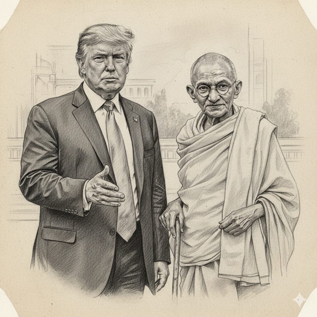 Mahatma Gandhi supported Swadeshi (boycott of foreign imported goods). Trump’s MAGA policy echoes this. In fact, both Gandhi and Trump have used Swadeshi / MAGA as a tool for economic warfare.